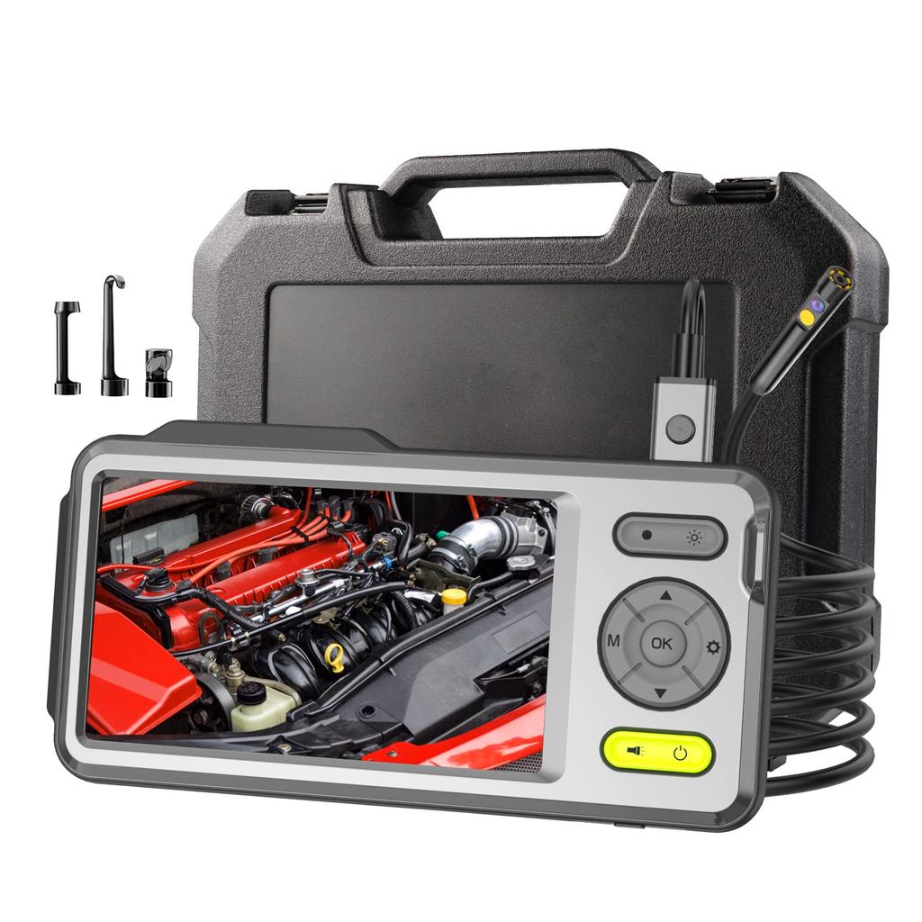 Fiberscope Endoscope Microscope Endoscope Camera Endoscope Recordable Snake Camera Industrial Endoscope Scope Camera Display Car/Equipment Inspection Camera Semi-rigid Cable Borescope Dual Lens Endoscope Camera Fiberscope with 6 LED Lights Snake Camera Scope Camera Endoscope Camera Air Conditioner/Drain/Sewer/Car Inspection [5-inch Display] The fiberscope camera is equipped with a 5-inch 1080P LCD monitor, and plug and play, so you don't need to download drivers or software. Just turn it on and you can use it. [Long-term use & rechargeable] The main unit has a built-in rechargeable battery, so you can recharge it with the included USB. No need to purchase it separately. It can also operate for 5-6 hours. [Dual lens & LED dimming] The endoscope has a dual lens design, so you can switch the camera with one touch, and the camera also has 6 LED lights, so you can see it clearly even in dark pipes. You can also adjust the brightness of the light from the operation panel, and it is compatible with various lighting environments. [5mm diameter & IP67 probe] Camera diameter: 5mm, 5m probe