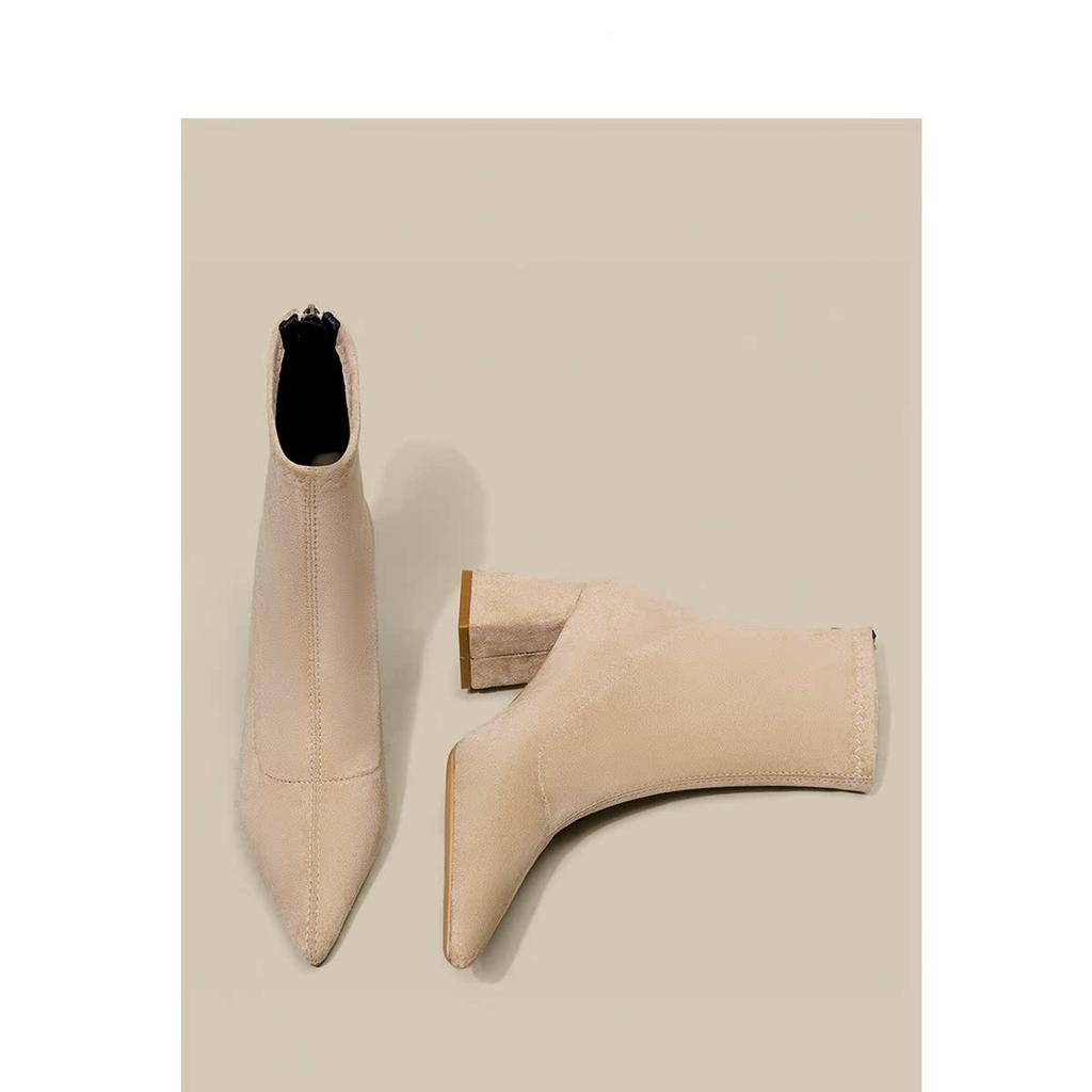 Large Size 2025 New Nude Boots Pointed High Heel Short Boots Women's Autumn and Winter Socks Boots Thick Heel Thin Boots — buy products online with free worldwide shipping!