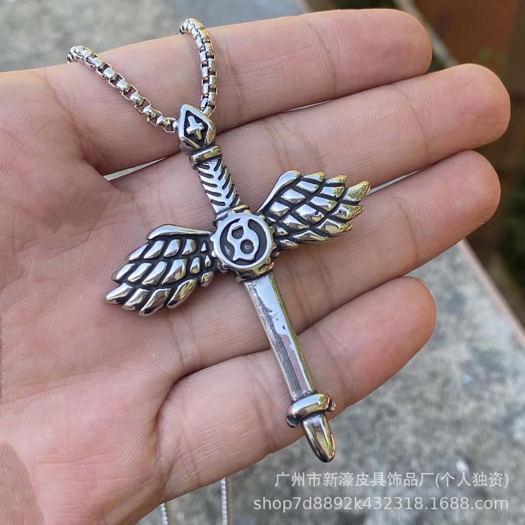 Titanium Steel Pendant Vintage Angel Sword Wings Sword Wings Weapon Letter Necklace