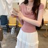 Swing collar slim slimming stretch short-sleeved T-shirt women's summer 2025 new hot girl short top — buy online with free worldwide shipping!