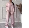 Cotton Linen Sets Two 2 Pieces Sale Casual Long Sleeve Button Loose Blouse Shirt&High Elastic Wide Leg Loose Pant Suits