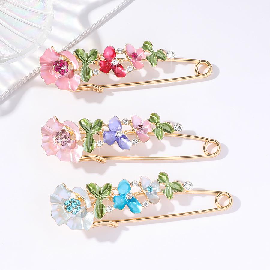 Elegant Flower Brooch with Oil-Drop Diamonds for Women - Versatile Pin for Clothing and Accessories