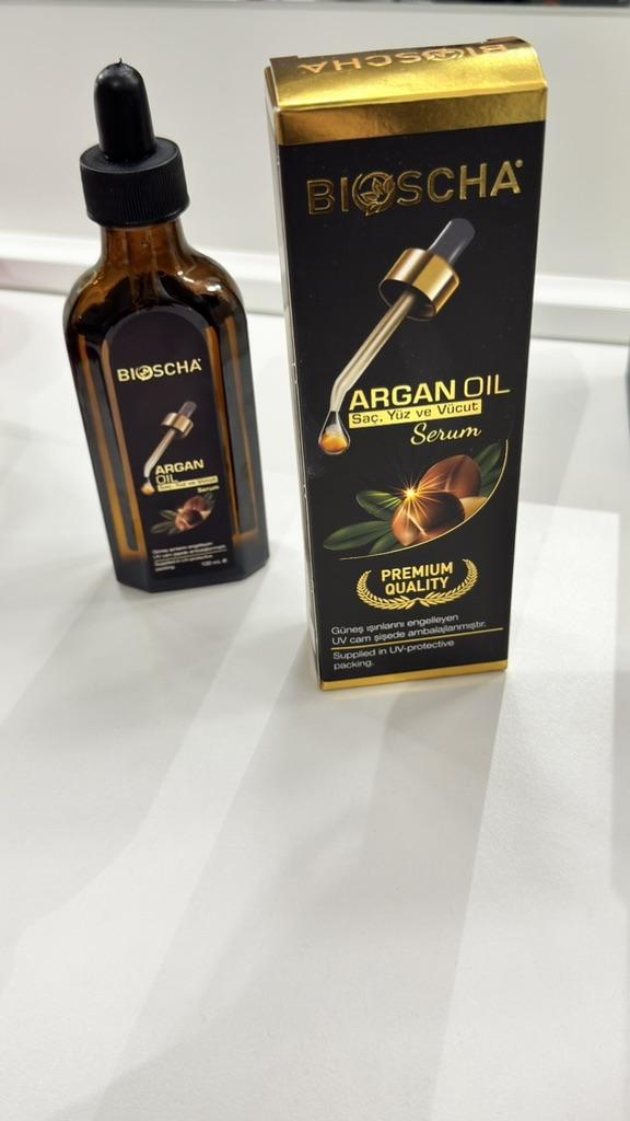Natural argan oil Its benefits are amazing for hair and for skin I really love using it on my hair And especially on the broken limbs You can't imagine what it does for the ends and gives them softness Because the use as a serum allows you to know the amount you will use In one point that the oil has a very persistent and very pleasant perfume scent This is excellent but at the same time it doesn't make me dare to try it on my face because it gets sensitive to perfumes. The packaging is excellent The carrying case is excellent Shipping took about 15 days. I highly recommend it 👌✨