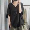 New Summer Style Half-sleeved Casual Loose Large Size Meat-covering Comfortable V-neck Top Short-sleeved T-shirt Solid Color Women's Clothing