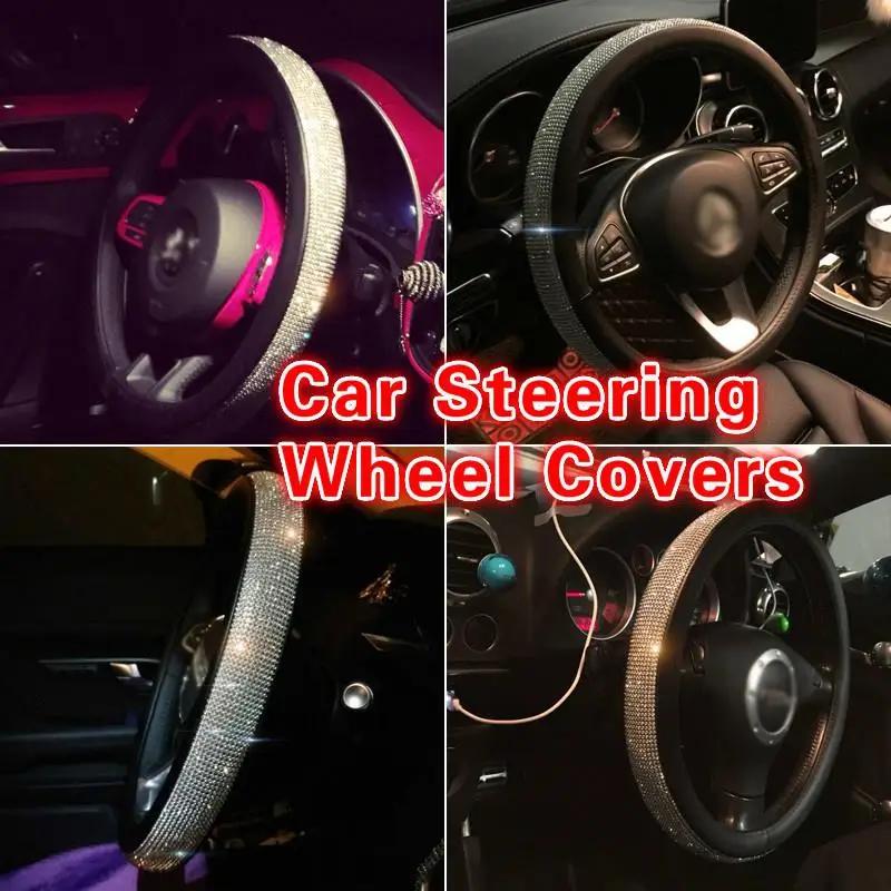 Fashion Shiny Rhinestone Diamond Car Steering Wheel Covers Lady Four Seasons Universal Cute Anti-sli Car Accessories Interior