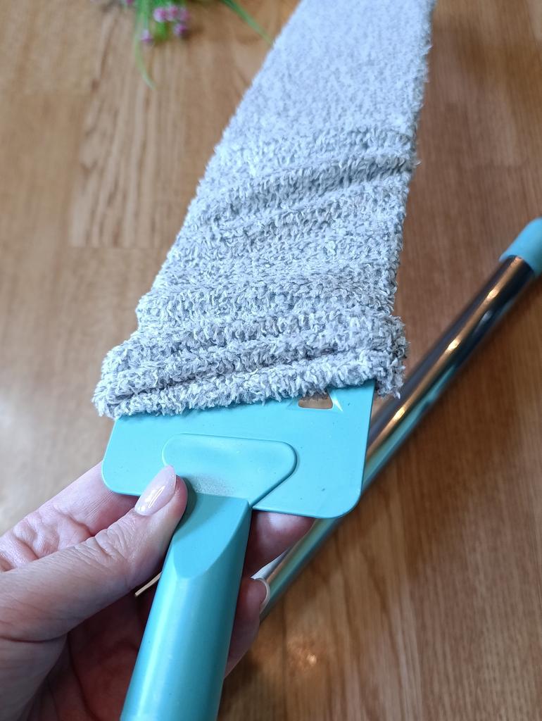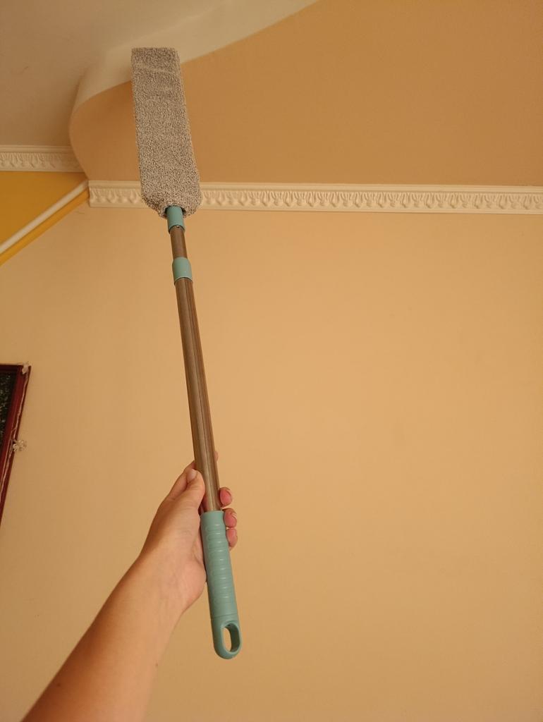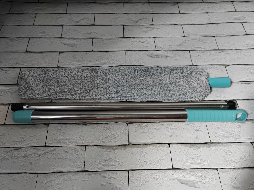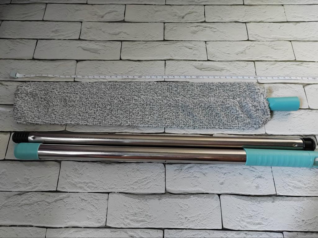 Mop for hard-to-reach places with telescopic handle This is the perfect solution for keeping your home clean. Thanks to its flat design, it easily penetrates narrow spaces and effectively removes dust and dirt. The mop is equipped with a special pad that attracts and holds dust, preventing it from settling again.. The handle is telescopic, so you can freely remove dust even on a high ceiling. Handle length: from 61-104 cm. The quality of the mop is good. The mop does its job perfectly! Satisfied with the order!