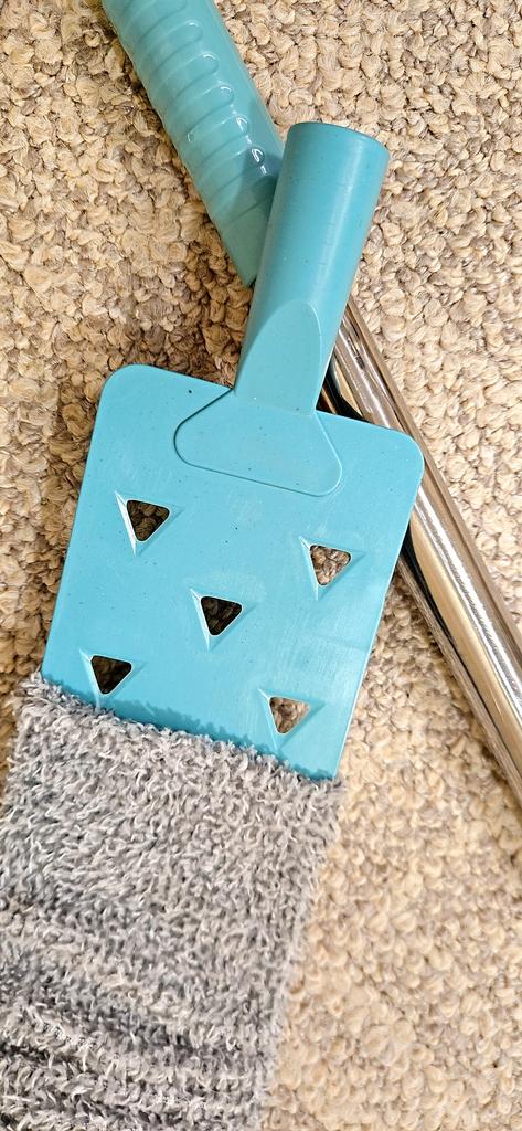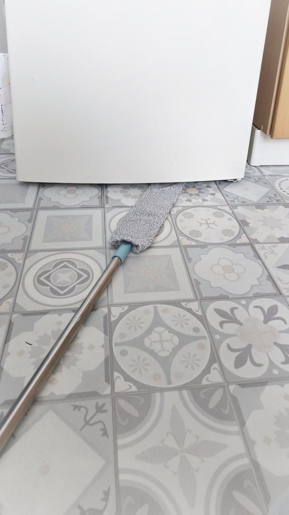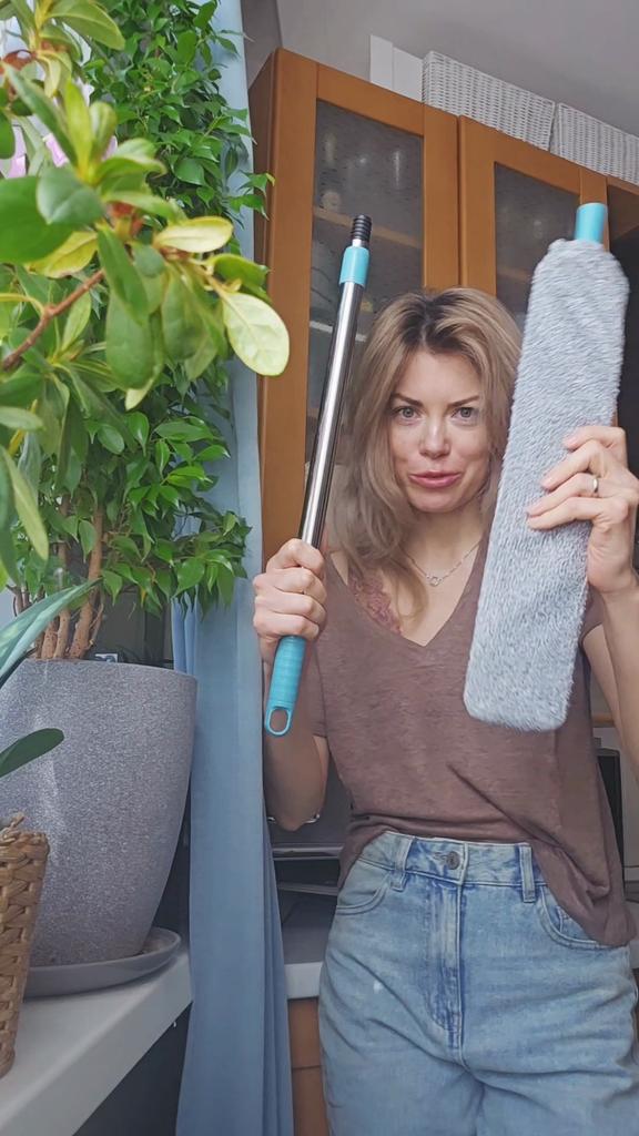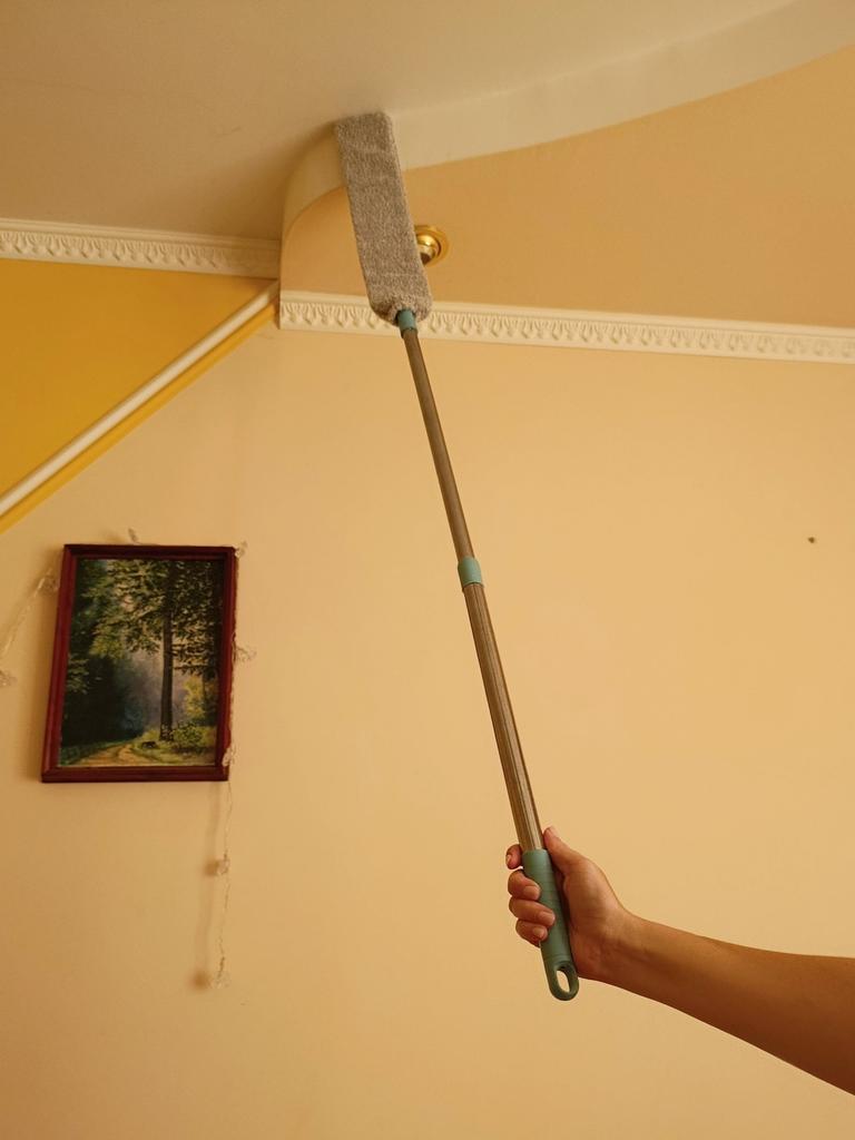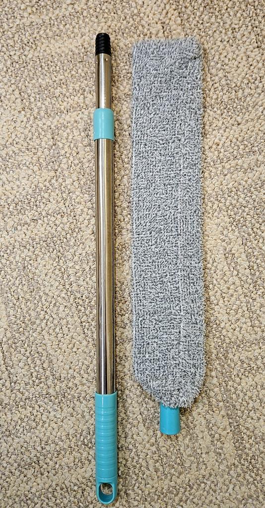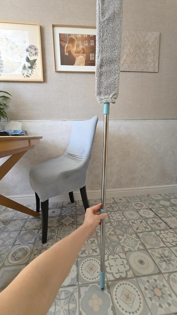 Mop for hard-to-reach places with telescopic handle This is the perfect solution for keeping your home clean. Thanks to its flat design, it easily penetrates narrow spaces and effectively removes dust and dirt. The mop is equipped with a special pad that attracts and holds dust, preventing it from settling again.. The handle is telescopic, so you can freely remove dust even on a high ceiling. Handle length: from 61-104 cm. The quality of the mop is good. The mop does its job perfectly! Satisfied with the order!