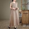 Summer new loose A-shaped big swing vest skirt women's versatile round neck sleeveless solid color cotton and linen dress — buy online with free worldwide shipping!
