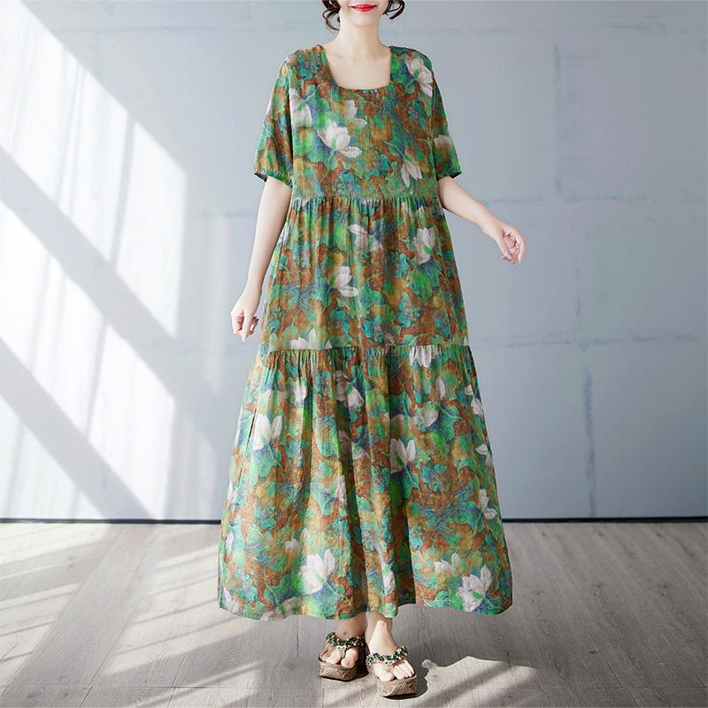 Dimanaf 2025 Summer Women Plus Size Dress Vintage Printing Flower Casual Loose Long Holiday Dress New Oversized
