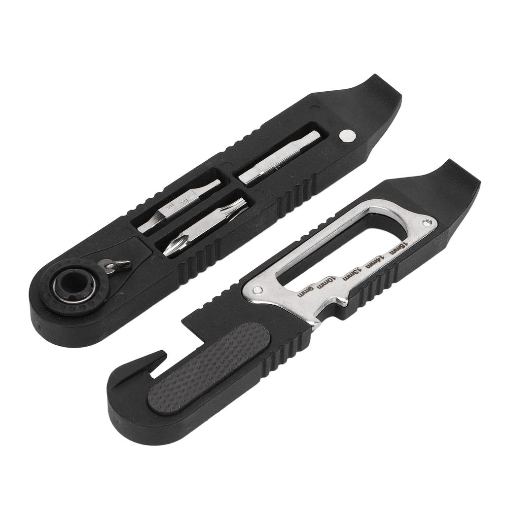 Functions: Spoke hook, ratchet wrench, file blade, screw bit H3xH4, H5xH6, T25xPH2, bottle opener, external hexagonal wrench 9 10 13 14 15mm, magnetic iron, tire prying rod.