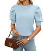 Casual Elegance: Embrace a casual yet stylish look with this top's loose version and bubble short sleeves. The ribbed closing design at the cuff hem adds a touch of elegance to your outfit, perfect for casual outings or work settings.