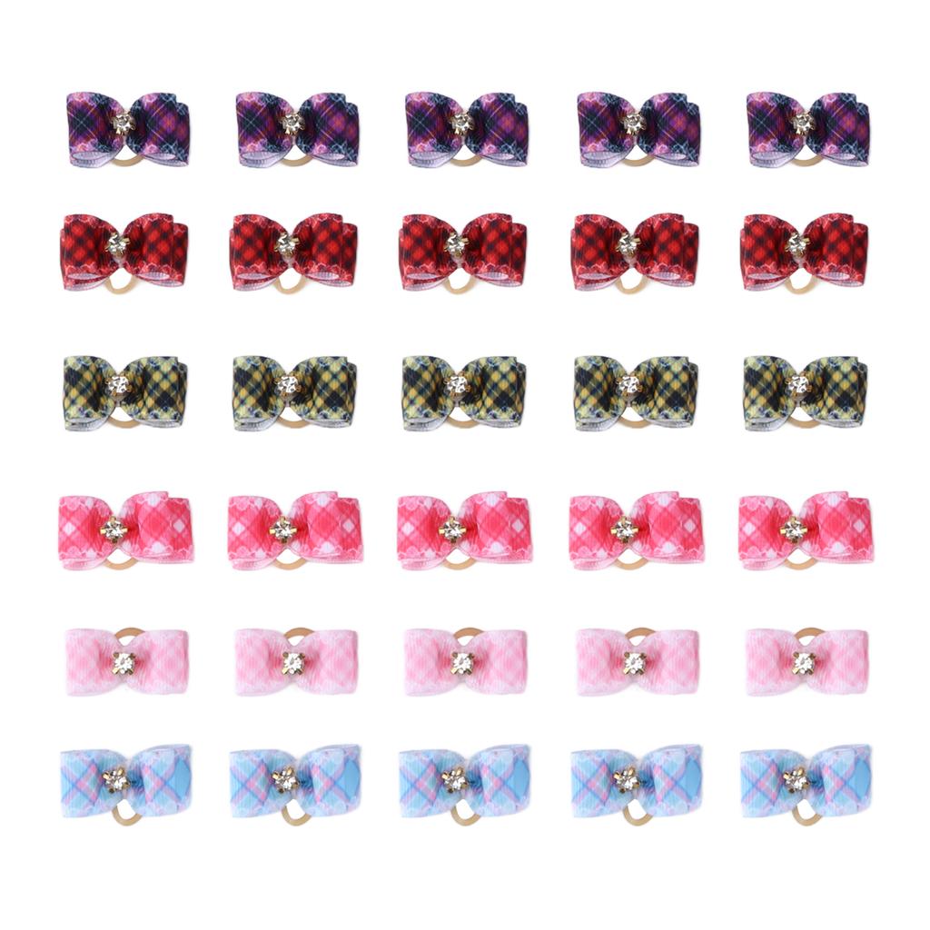 30Pcs Pet Grooming Bowknot Dog Cat Rubber Band Tiny Colorful Lattice Pet Accessory — buy online with free worldwide shipping!