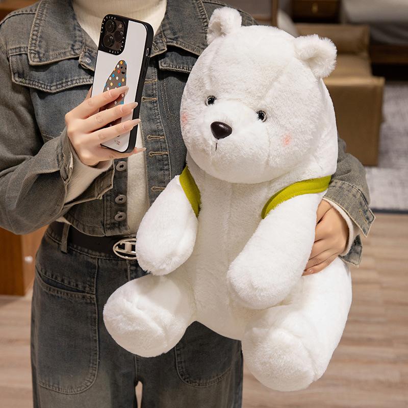 Cartoon Backpack Polar Bear Doll Sitting White Bear Plush Toy For Girlfriend Valentine'S Day Gift Bear Throw Pillow