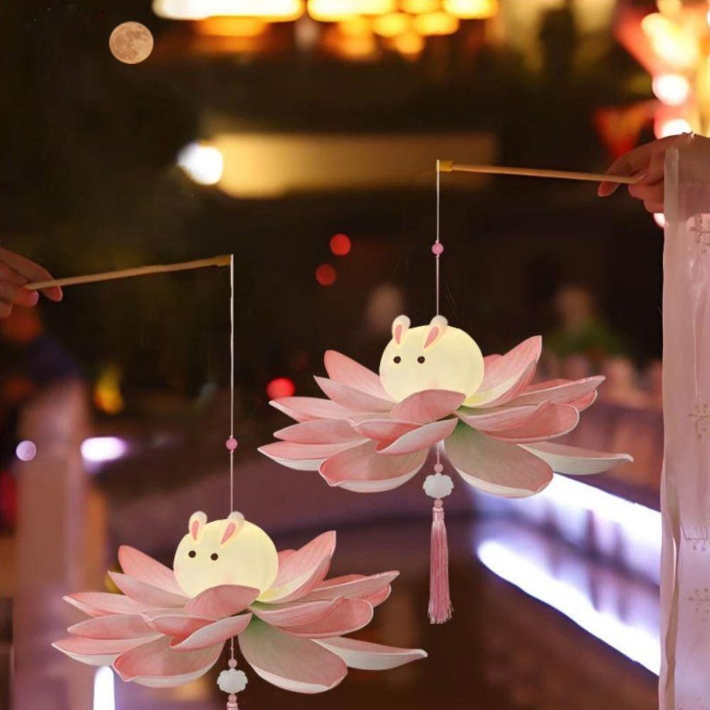Glowing Mid-Autumn Festival Lantern DIY Holiday Decoration New Lotus Rabbit Lamp