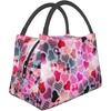 Red Heart Pattern Valentine's Day Lunch Bag Portable Reusable Insulated Lunch Box for Women Men Tote Bag for Work Travel Picnic