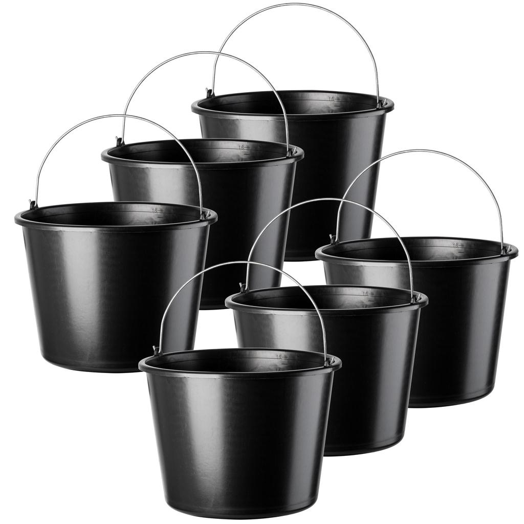 A functional construction bucket from the KADAX brand, which is an indispensable element of every builder, hard-working farmer or person who prefers to wash their car or scooter by hand. The capacious product allows you to transport water and other liquids, construction tools, stones, sand or cement.. This is a very helpful accessory when building a house, tidying up the garden from leaves or carrying heavier objects. The reinforced bottom of the bucket in the form of ribs increases its resistance to mechanical damage, scratches or cracks.. The ergonomic handle made of galvanized wire is very comfortable to hold, allows you to comfortably carry and lift the item and easily transport it with the contents inside.. An additional advantage of the handle is that once it is set in motion, it does not automatically fall down after being released, but remains stationary. Polypropylene, the material from which the item is made, has very good chemical resistance, physiological indifference, high thermal expansion, stiffness, hardness and tensile strength.. Additionally, the product does not absorb moisture and maintains very good electrical insulation.. Each plastic bucket is made using recycled materials.. Available volumes: 12, 16, 20 liters. Practical bucket can be successfully used for work in construction, workshops and gardens.. The product is useful when concreting a wall near the house, it can be used to pour water into a concrete mixer or temporarily store mortar, which is always at hand in a bucket. The bucket is useful when raking leaves or trimming bushes - as a container for throwing away leaves, waste or fragments of home trees.
