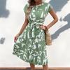Women's Fashion Summer Spring Geometric Print Short Sleeve O-Neck High Waist Casual Dresses