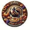 Thanksgiving Festive Sign: A "Happy Thanksgiving" 2D Round Plaque Embellished with Turkey and Autumn Harvest Decor