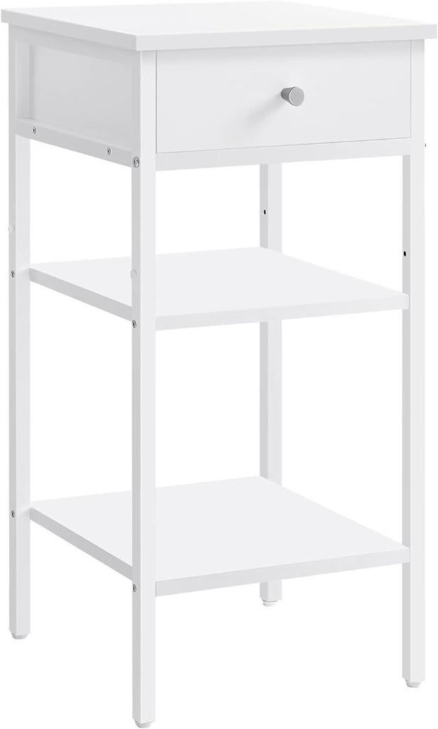 Bedside Table, End Table, High Bedside Table with Drawer and 2 Shelves for Storage, Space Saving, Industrial Table