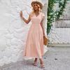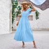 Women Summer Casual V-Neck Slim Dress Solid Color A-Line High Waist Layered Long Dresses Spring Short Lotus Leaf Sleeve S-XL