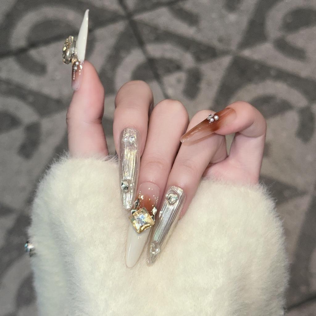 Autumn and Winter Wear Armor High-end Atmosphere Caramel Color Blush Magic Mirror Manicure Flash Love Diamond Removable Nail Piece
