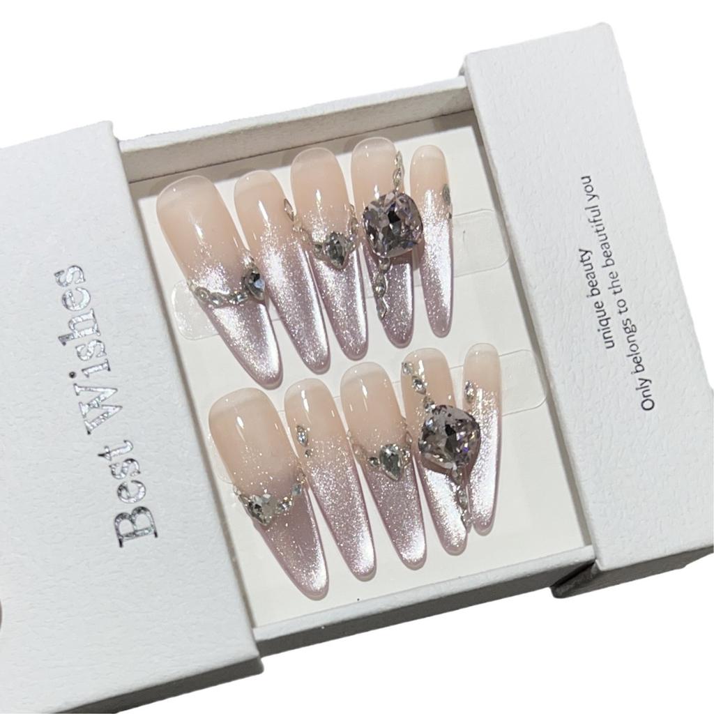 Long Cat Eye Wear Armor Handmade Purple Romantic Flash Diamond Manicure Nude Fake Nail Removable Nails