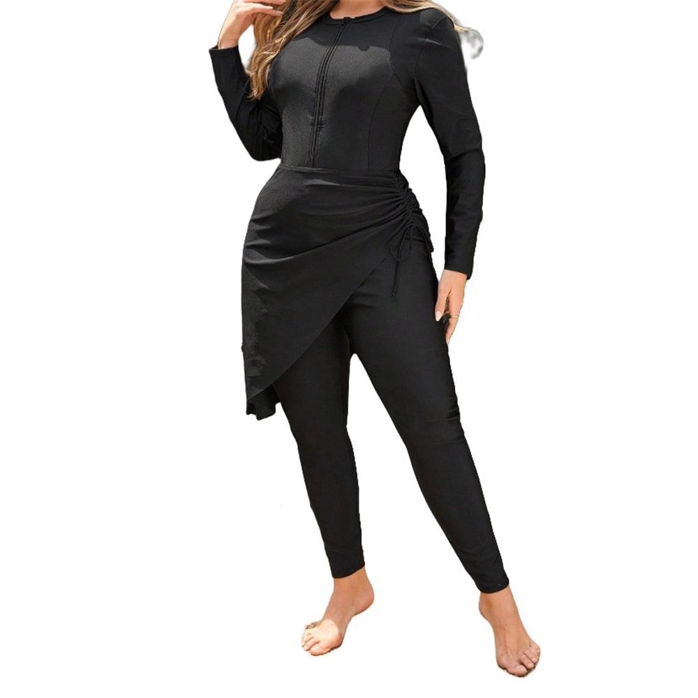 Large Size Swimsuit Women's Three-piece Set Long Sleeves Long Trousers Skirt Middle Eastern Style Conservative Swimsuit Set For Women