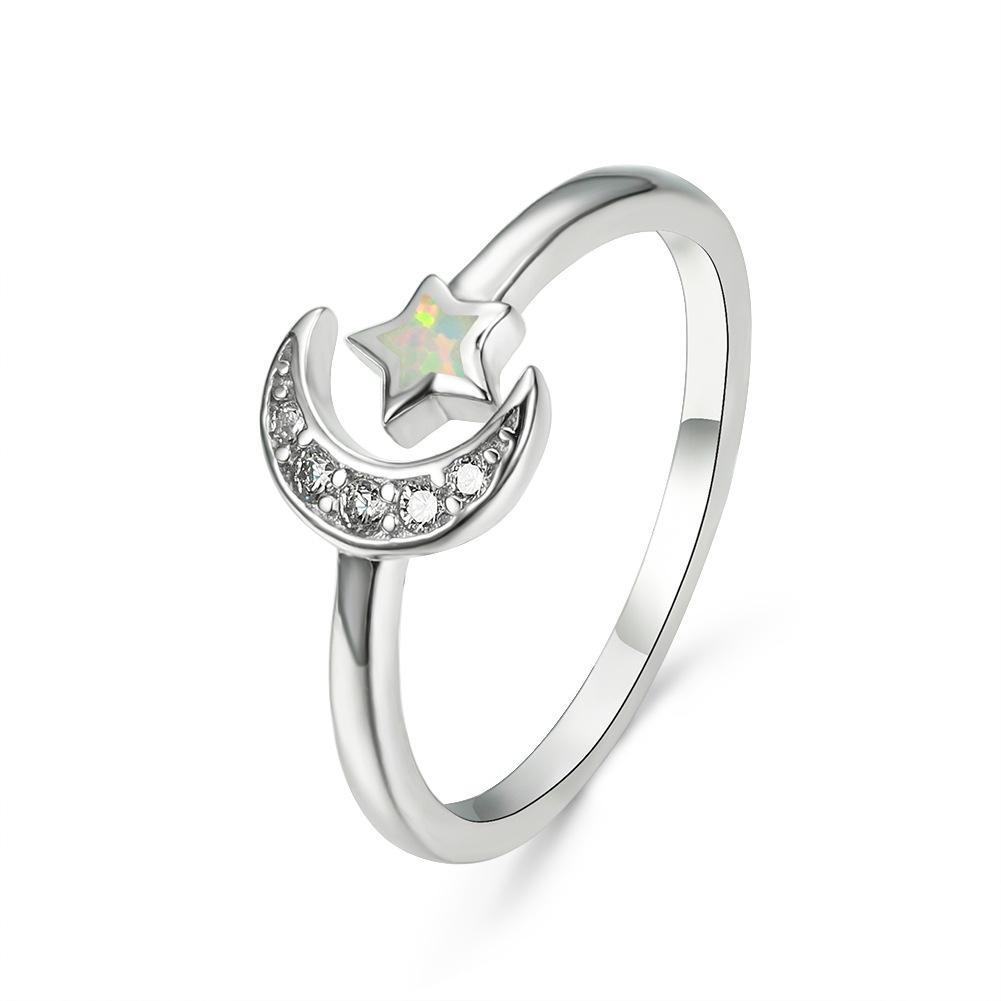 Fashionable White Star Micro Inlaid White Diamond Moon Opening Womens Versatile Ring — buy online with free worldwide shipping!
