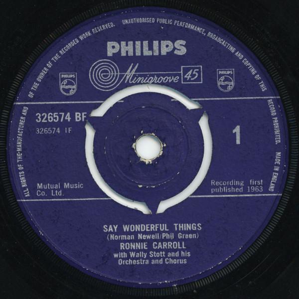 7inch Record RONNIE CARROLL - Say Wonderful Things 326574BF Philips 1963 UK Pop Used — buy online with free worldwide shipping!