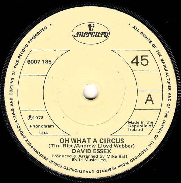 7inch Record DAVID ESSEX - Oh What A Circus 6007185 Mercury 1978 Ireland Rock Used — buy online with free worldwide shipping!