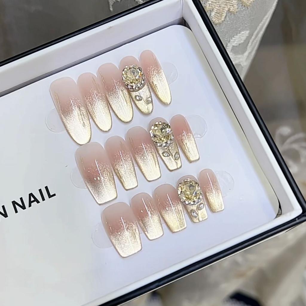 Pure Handmade Phototherapy Nail Art Star, A Single-show Wearable Nail Finished Cat Eye Nail Art Patch Shows Whiteness and Temperament