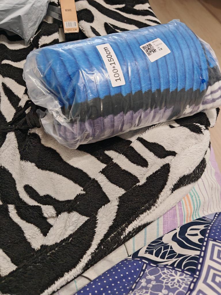 The thin blanket is fluffy on both sides. The color is bright, as in the picture.