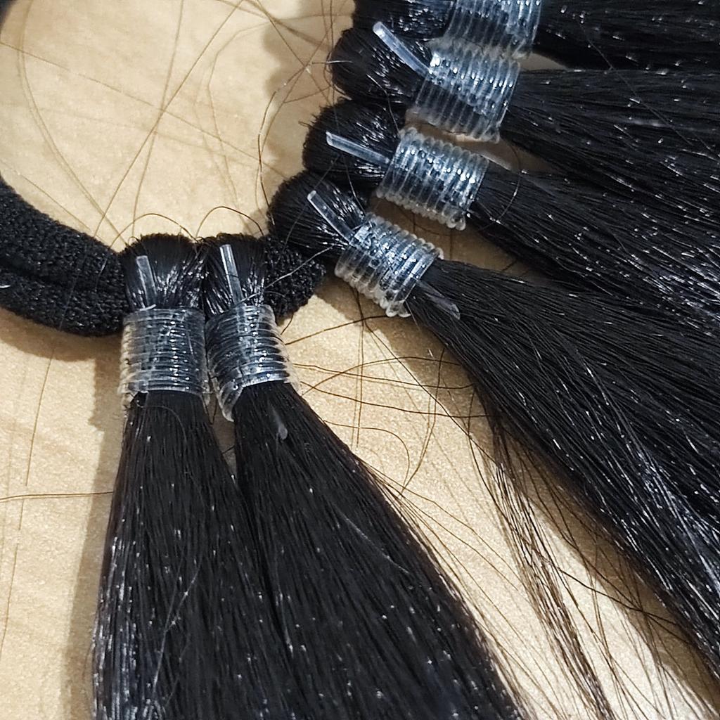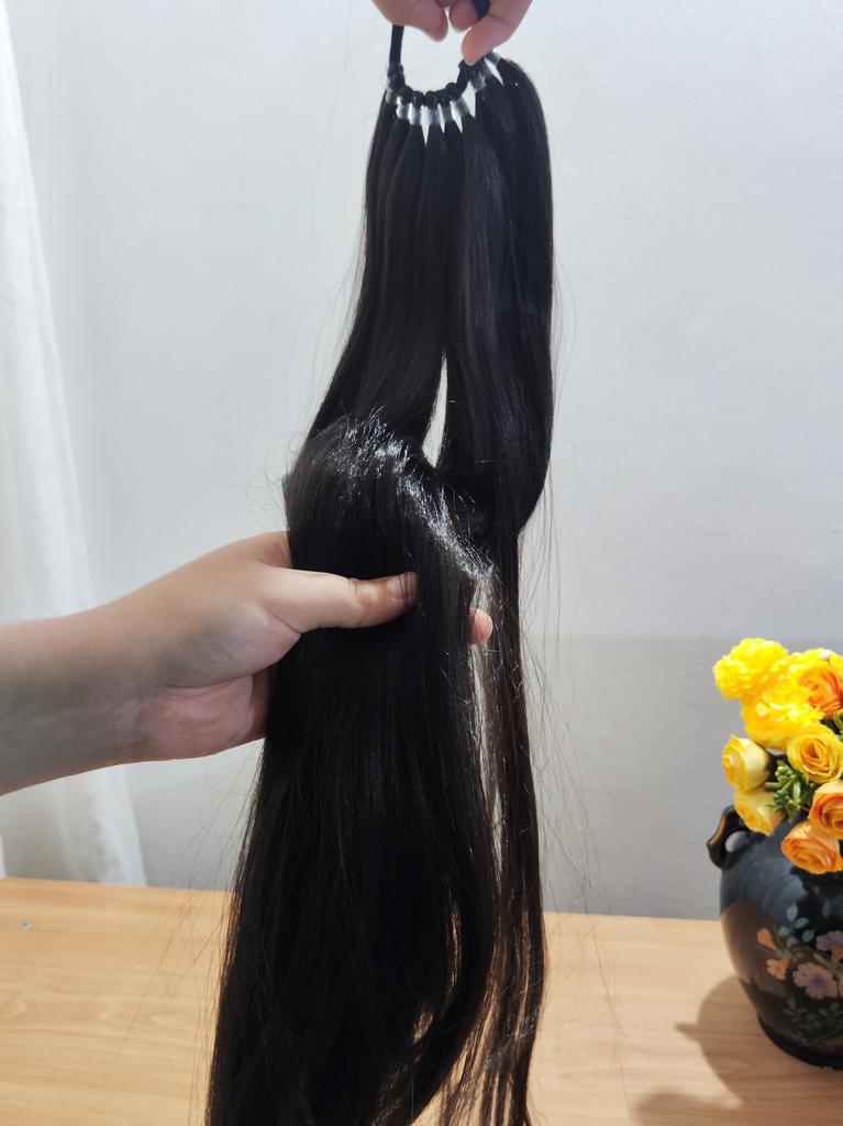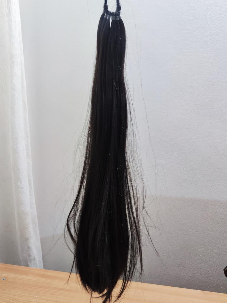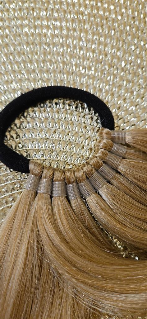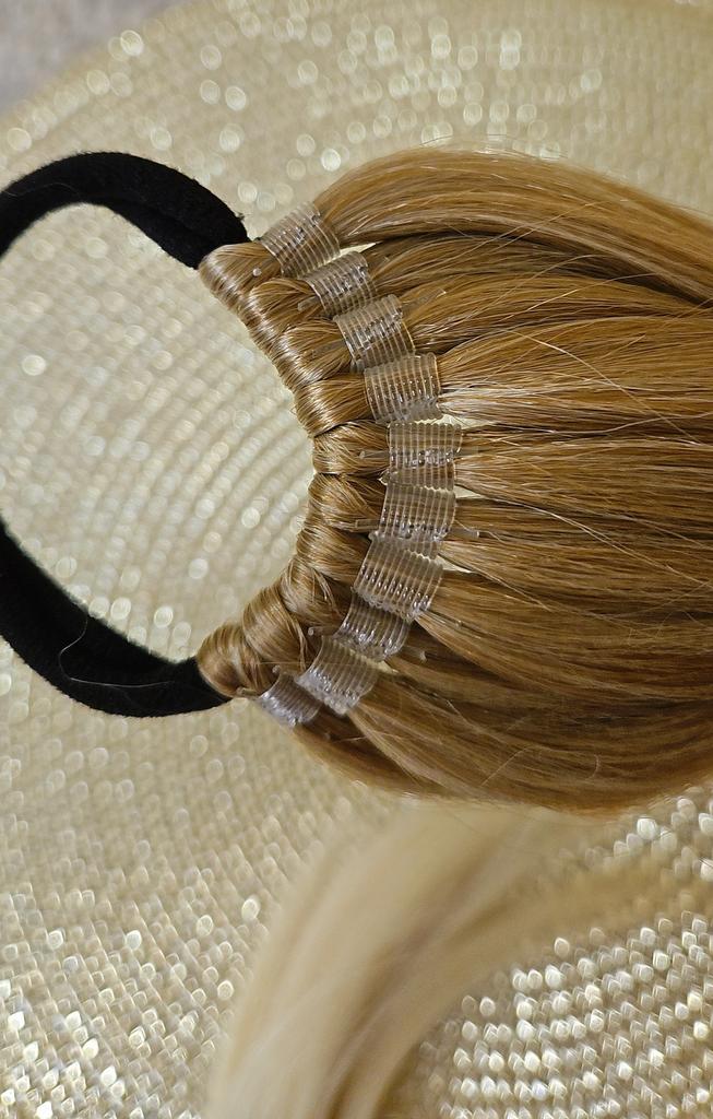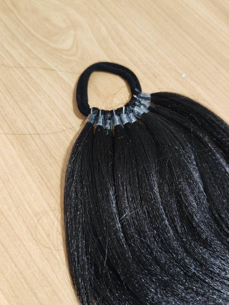 Clip-in ponytails can be used for photoshoots, events in everyday life. Lightweight and comfortable to use Hair attached to an elastic band. Attachment method: tie your hair into a ponytail, wrap an elastic band around it several times, wrap one of the strands around the elastic band to hide it How to care for it: can be washed in warm soapy water, dried naturally. Can be combed (gently, starting from the bottom of the hair and gradually moving upwards). In case the hair is very tangled, it can be untangled with the help of ironing. Tangling occurs due to the loss of the even structure of the hair, and the more you try to comb through the strand - the more it deforms, becoming like an accordion. Run the iron over the strand, thereby straightening the hair, and then comb through it. Do this until the hair regains an even structure.