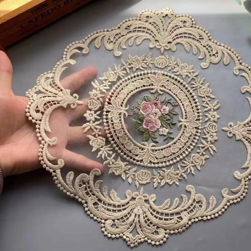 28cm Lace Embroidered Vintage Lace Placemat Cover Towel Tea Table Mat Decorative Ornament Tablecloth Flag