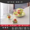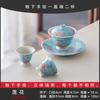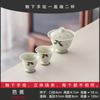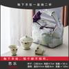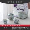 Guochao Hand-Painted Rose Cover Bowl Two Cup Set Portable Cloth Bag Outdoor Tea Drinking High Value Light Luxury Travel Tea Set