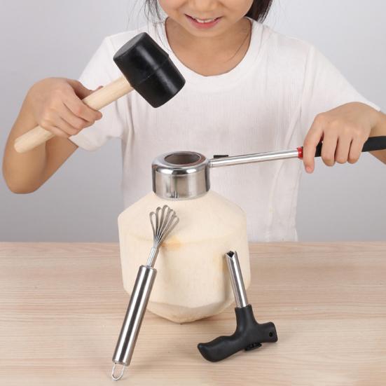 Precious Gift Idea: This comprehensive coconut opening tool set includes a coconut shell knife, rubber hammer, and more. It makes a thoughtful gift for coconut enthusiasts among your family and friends, offering practicality and simplicity in one package.