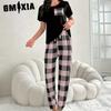 GMXIA Women's Plaid Homewear Pajamas Two Piece Set with Pockets Casual Comfortable Wearable Thin Pajamas — buy online with free worldwide shipping!