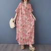 Women's Vintage Long Dress with Cotton and Linen Patterns