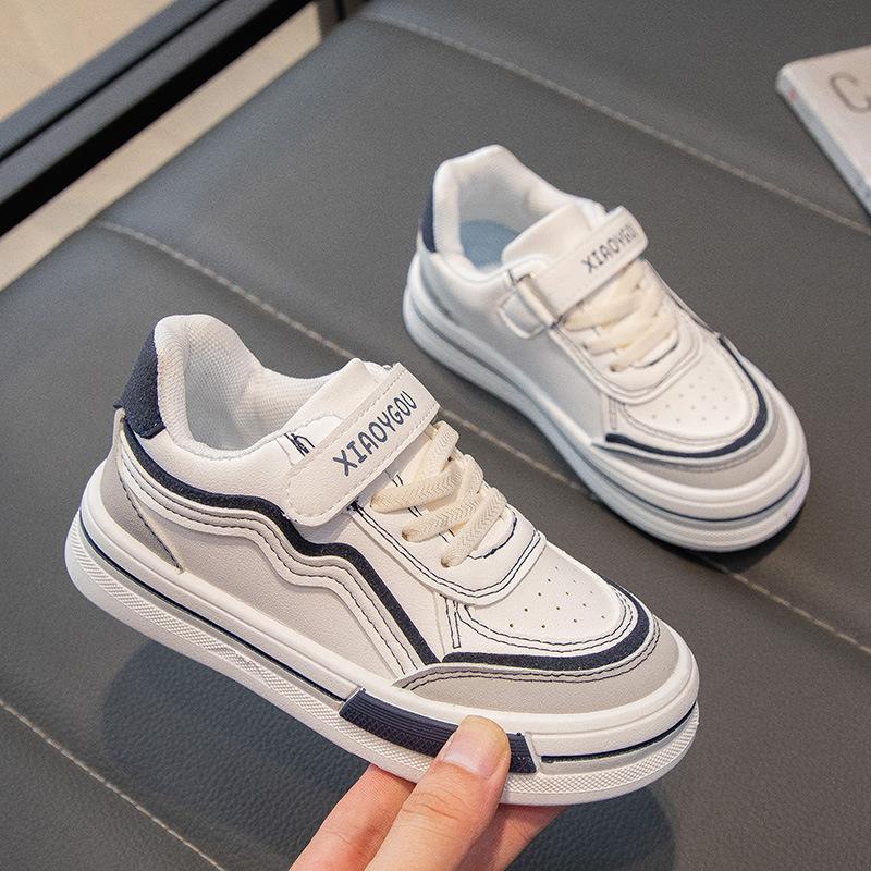 Spring and Autumn Children's Leather White Shoes New Elementary School Sports Board Shoes Boys and Girls Soft Sole Students