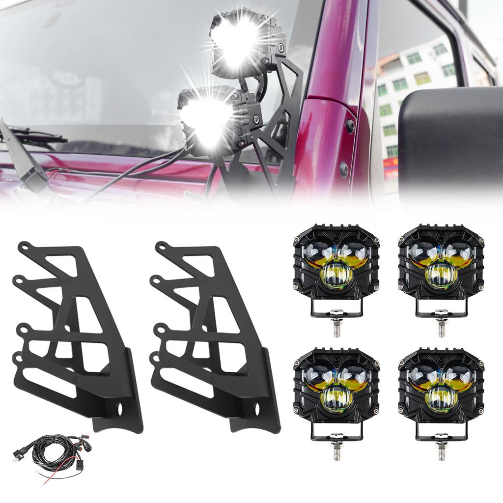 Vancroser Wrangler JK Work Light 4 Light Fixed Bracket Suit with Wire Harness Fog Lamp LED Work Light Work Light 12V 24V Spotlight LED Work Light