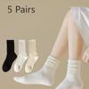 5 Pairs of Simple and Versatile Socks for Women, Antibacterial and Deodorizing Long Socks, Sports Sweat-absorbing White Cute Autumn Mid-length Socks