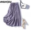IHUASU Women's Fashion Casual Solid Color Print Summer Spring Skirt