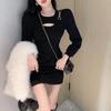 Temperament Hollow Black Dress for Women In Spring and Autumn New Fashionable Internet Celebrity Hot Girl Waist-hugging and Slimming Hip Skirt
