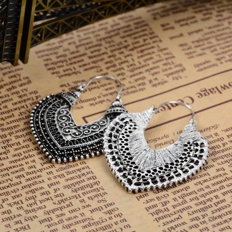 Women Vintage Hollow Heart Dangle Earrings Antique Color Female Drop Earrings Ethnic Ear Jewelry Party Gift Pendiente Jewelry