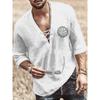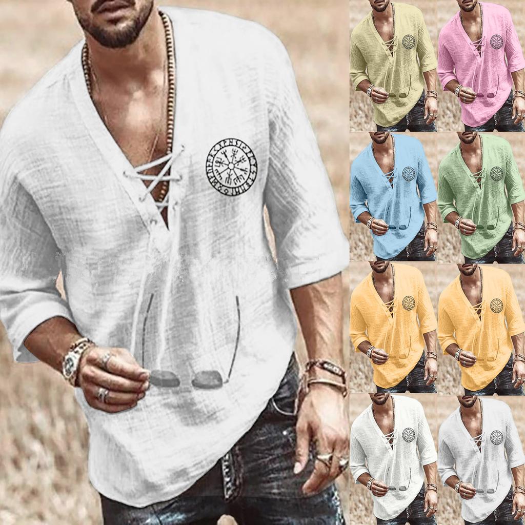 Men's Spring Summer Casual Fashion Drawstring Cotton Linen Solid Colour V-neck Long Sleeve — buy online with free worldwide shipping!