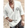 Men's Spring Summer Casual Fashion Drawstring Cotton Linen Solid Colour V-neck Long Sleeve