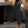 Women's Fashion Loose Cotton Linen Solid Color Casual Side Pocket Elastic Drawstring Trousers