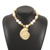 Tooxika Exaggerated Hollowed Out Conch Pendant Necklace Fashion Round Beads Mixed Colour Imitation Pearl Necklace