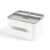 Introducing the versatile tissue box, designed for easy access and organization. Keep your tissues and papers within reach with the open design, while the remote holder and storage rack ensure everything stays tidy.