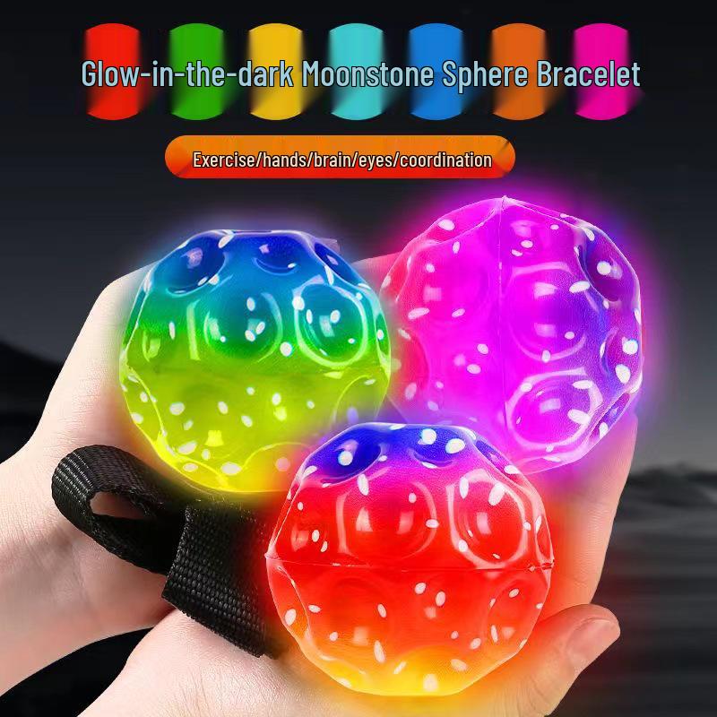 Luminous Rubber Wrist Ball with Elastic Rope - Kids' Rebound Toy for Boys' Boredom Relief